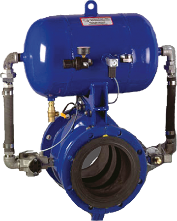 Designed to respond in the manner of an ‘air bag’ in a vehicle, when the IVE isolation valve is directed to close, an inflatable bladder immediately fills the body cavity to stop product flow and arrest flame propagation. This operating mode minimizes the reaction forces generated by the IVE valve. The BS&B Type IVE valve is available in sizes from 4” to 16” nominal diameter (100mm to 400mm). Activation of the valve can be by BS&B supplied pressure or optical sensors.